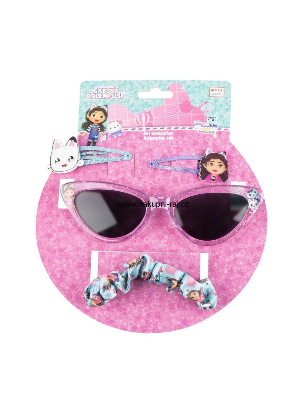 Souprava 2 gumičky, 2 sponky a sluneční brýle s motivem Gábinin kouzelný domek.
