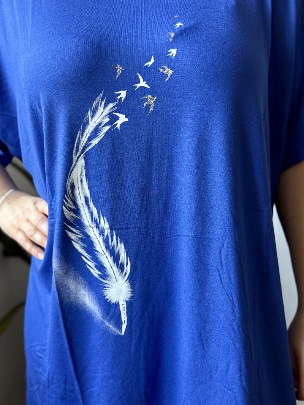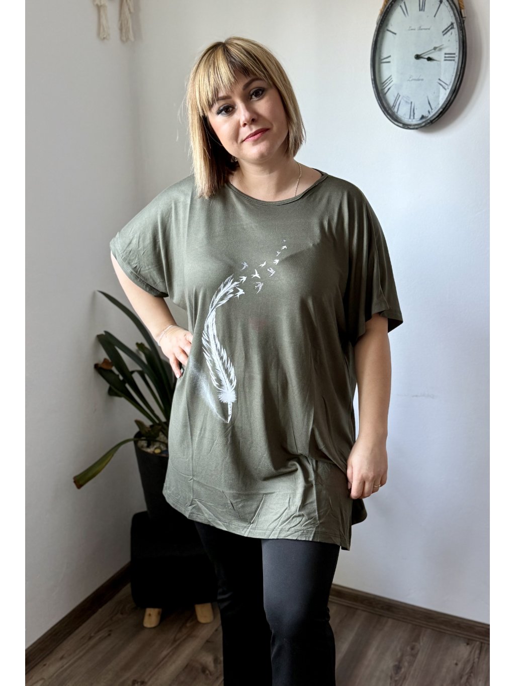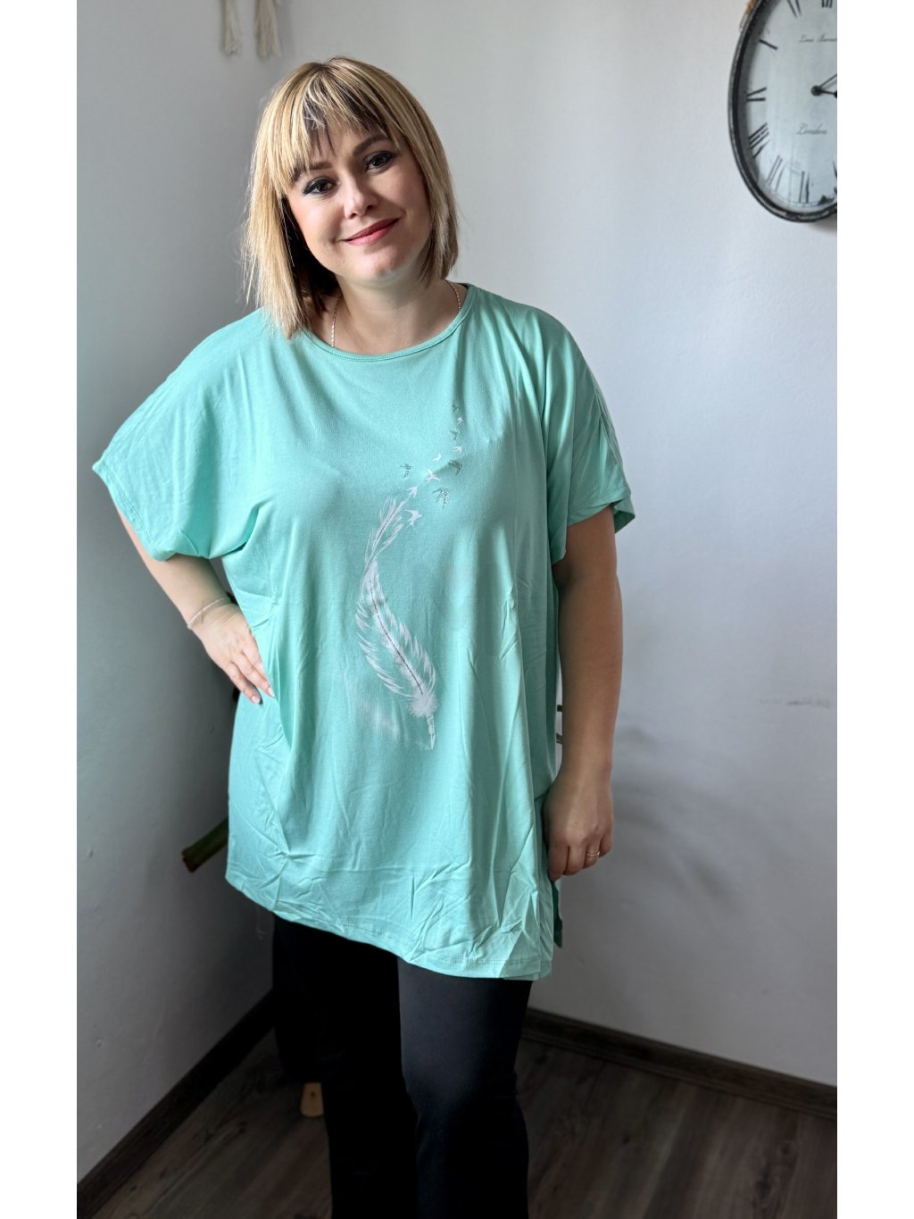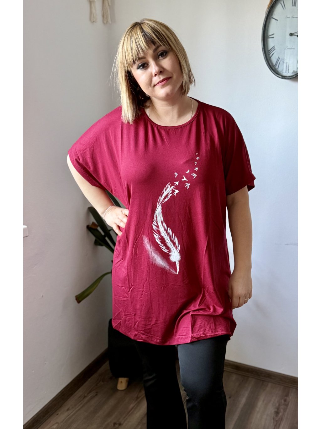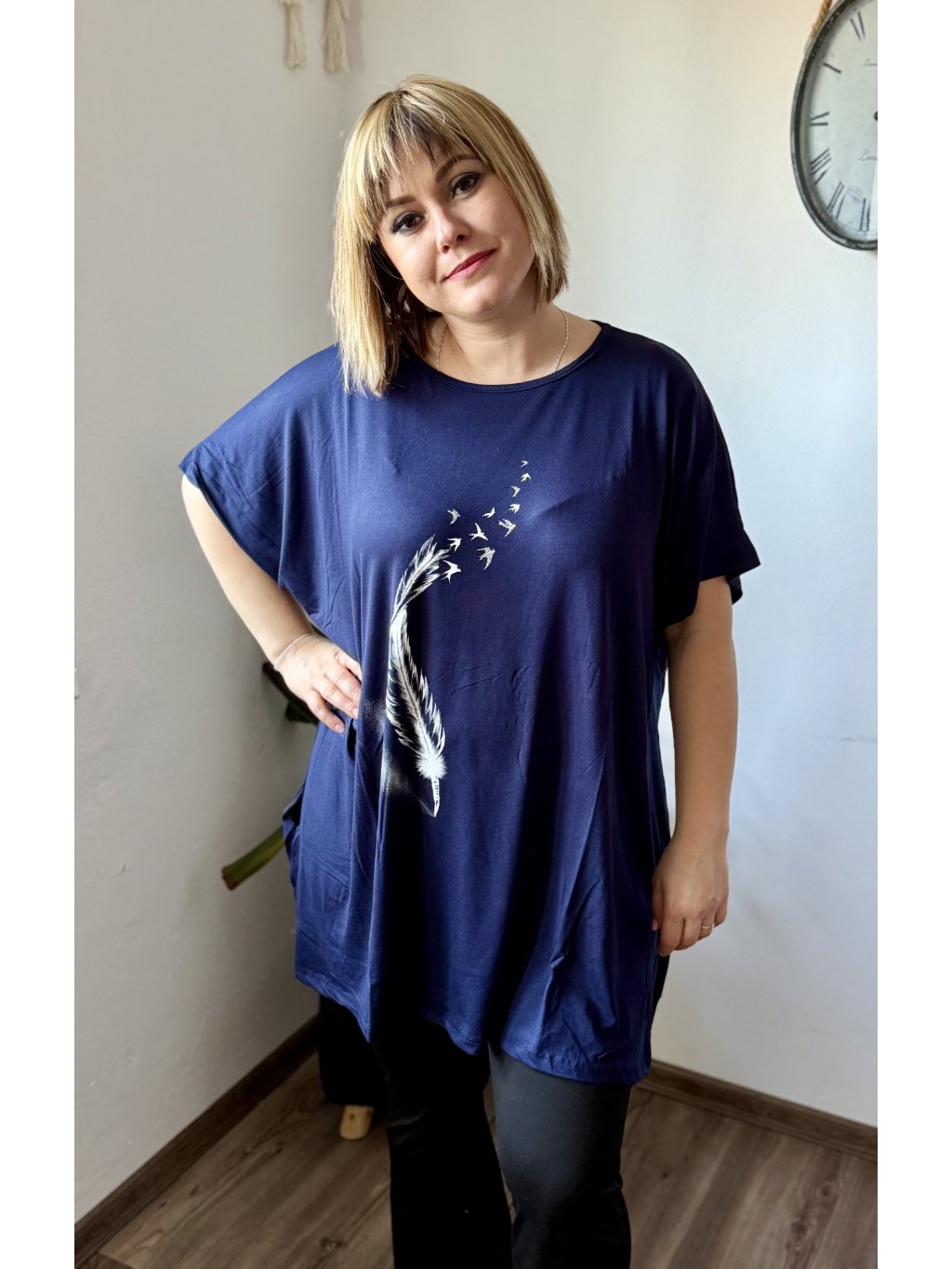Objevte oblíbenou tuniku, která kombinuje maximální pohodlí s moderním oversize střihem. Materiál 95 % viskóza a 5 % lycra zaručuje hebký omak, přirozený pad a mírnou elasticitu pro lepší přizpůsobení tělu. Tunika má široký výstřih, krátké rukávy a dostatečnou délku, která zakryje boky — ideální k legínám, úzkým kalhotám nebo jako vrstva přes šaty. Díky široké paletě 11 barev snadno najdete odstín podle nálady i sezóny. Potisk dodává modelu osobitý styl.
