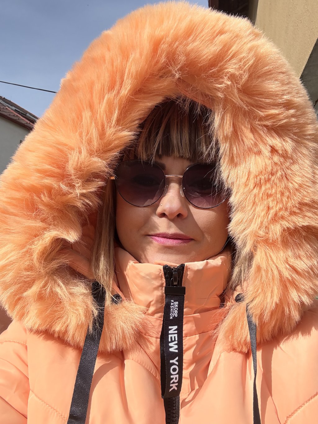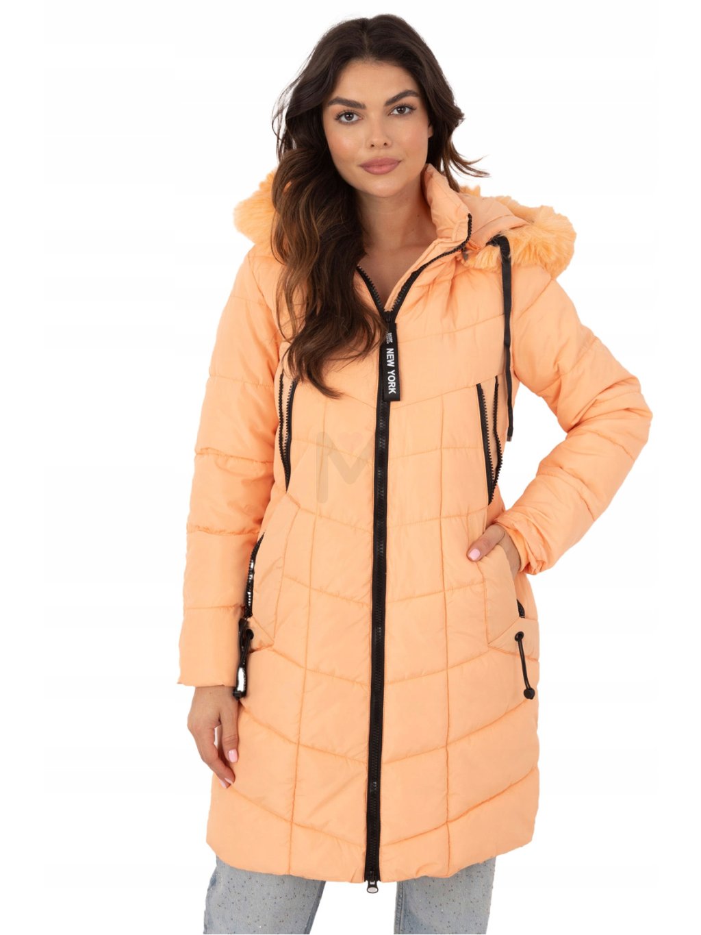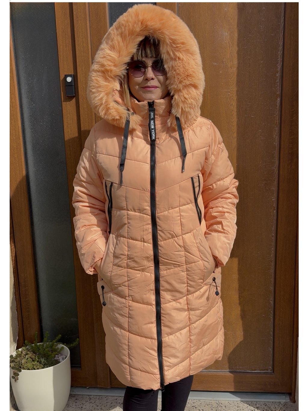 - Moderní dámský zimní kabát s kožešinou okolo kapuce ( lze odepnout )