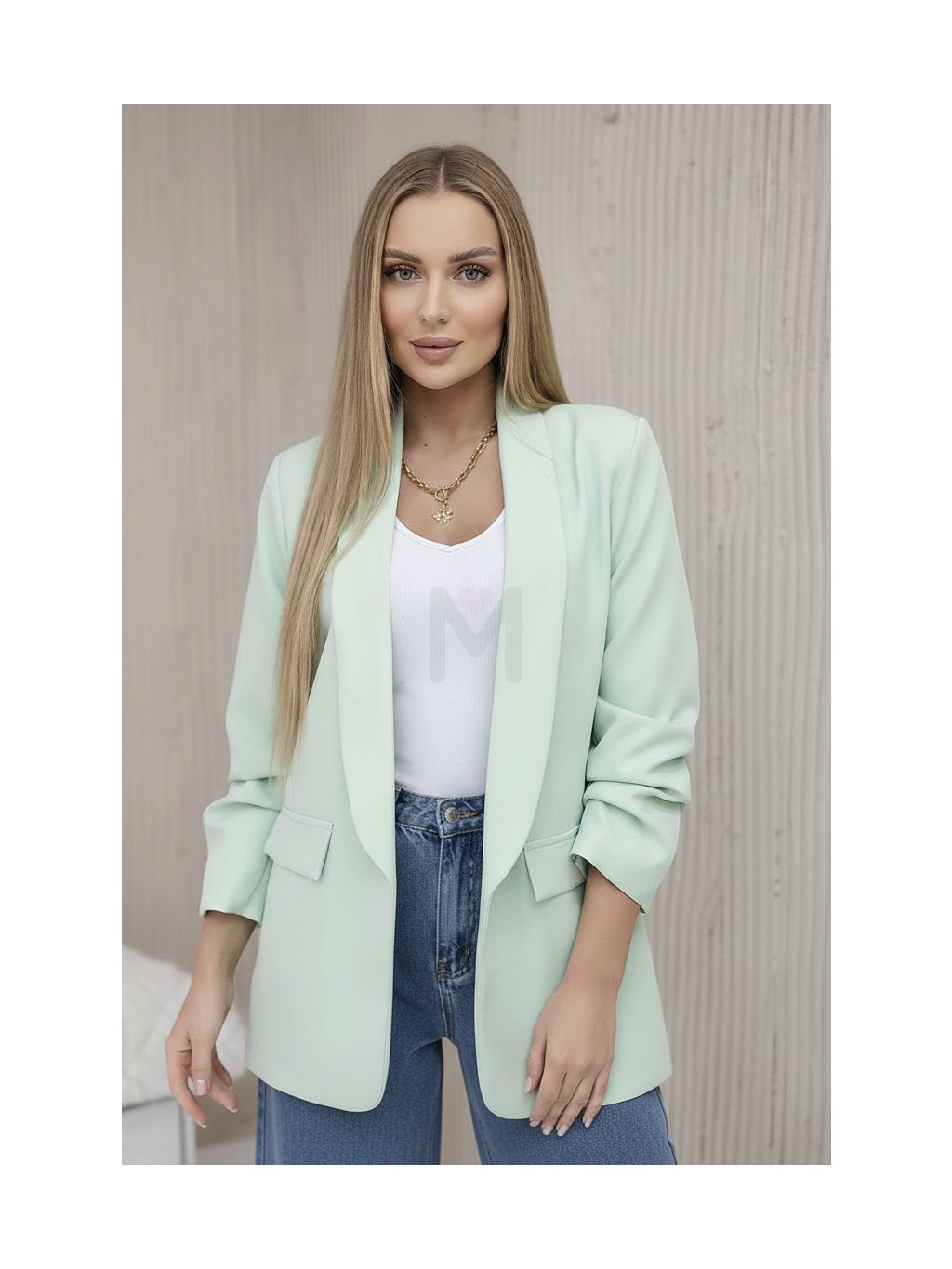 Lehké mintové sako v kabátkovém střihu — elegantní i casual kousek, který osvěží každé jarní i letní outfit.