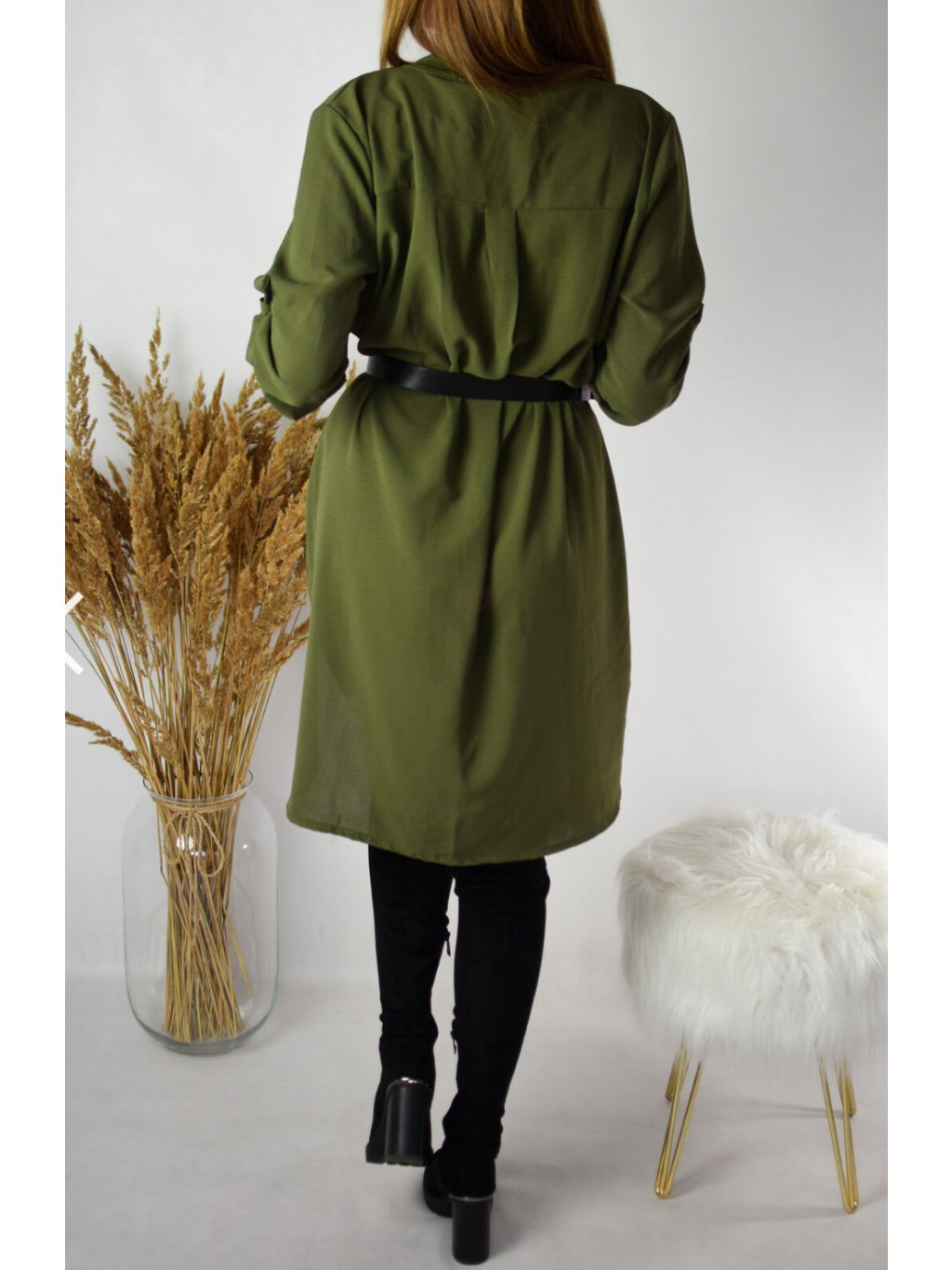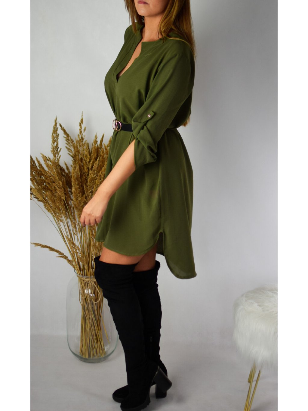 Elegantní košilová tunika, která je ušita v oversize stylu! Pásek je součástí šatů.