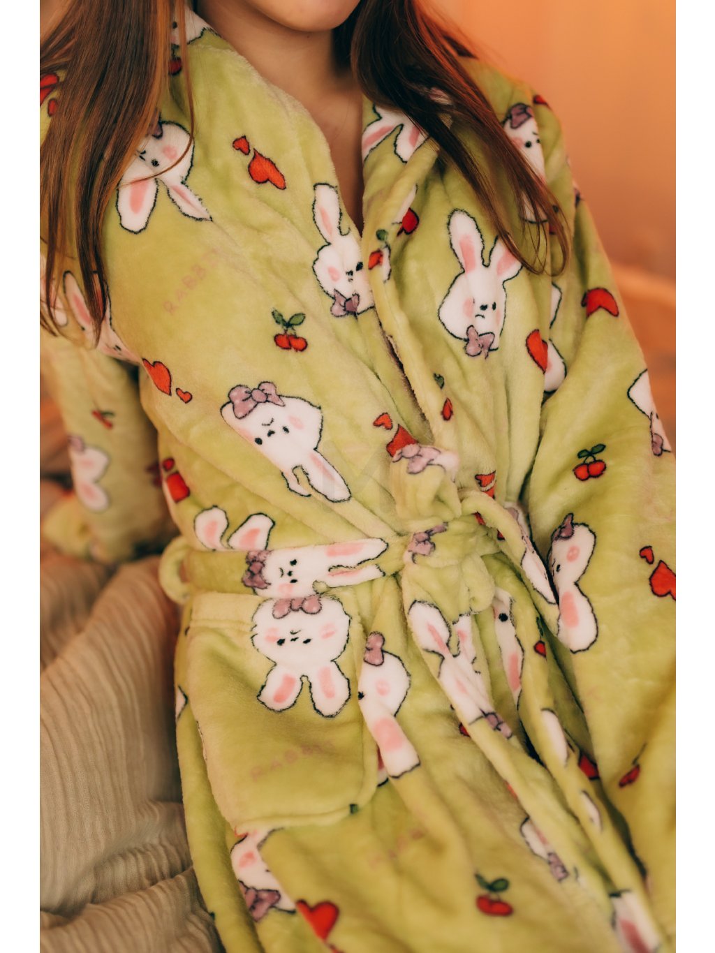 Plyšový župan s motivem králíčků - měkký hřejivý domácí župan - MIX BAREV
