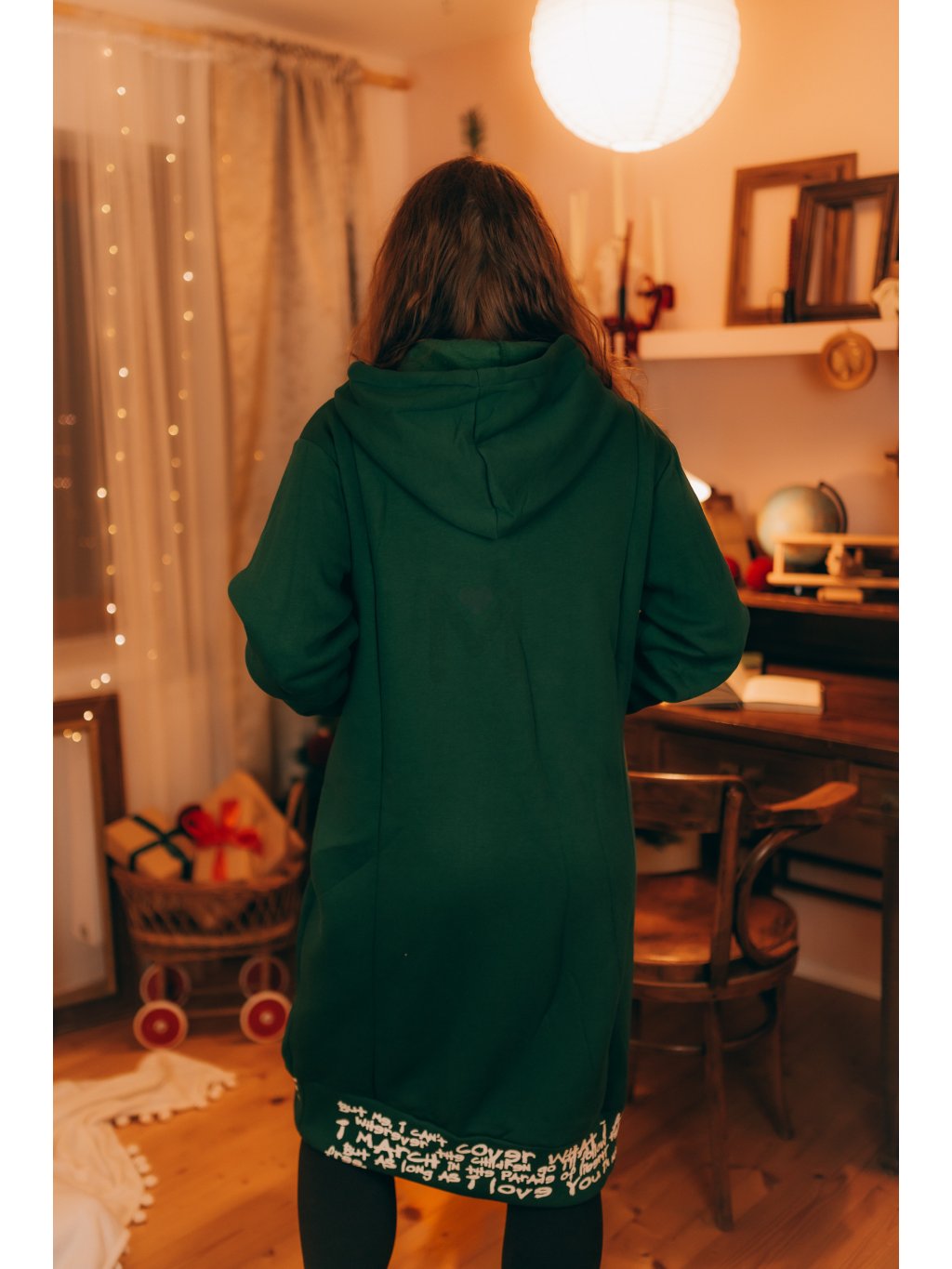 Dlouhá oversize mikina s kapucí – tmavě zelená