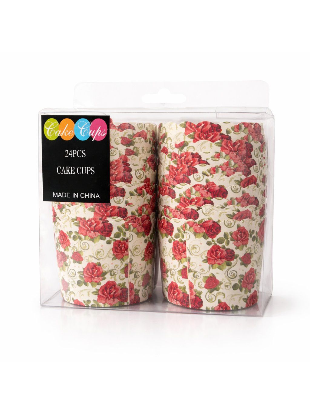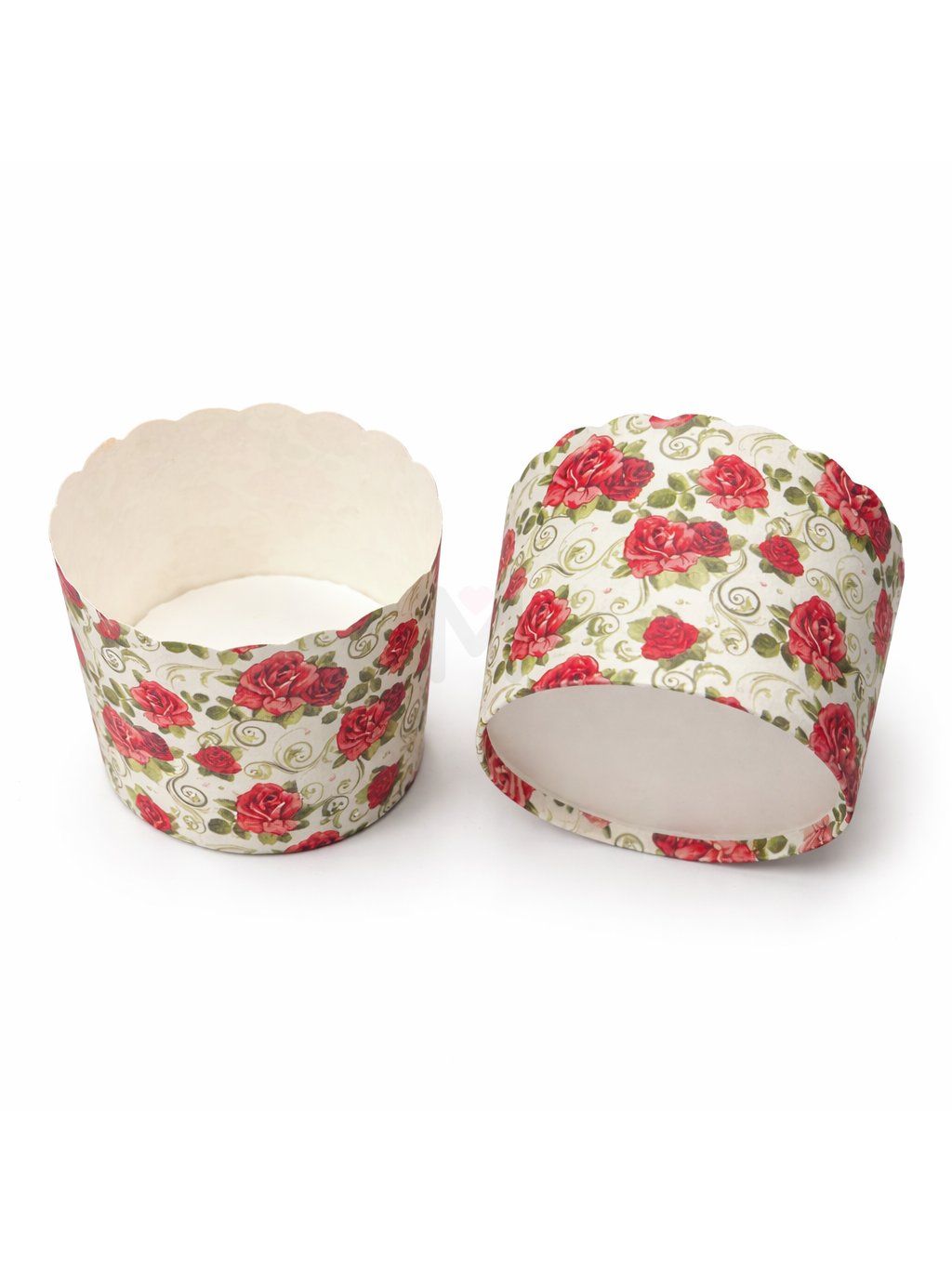 Sada 24 kusů pevných papírových košíčků na pečení (tzv. cake cups) s romantickým motivem červených růží a ornamentů na světlém pozadí. Tyto košíčky jsou ideální pro přípravu muffinů nebo cupcakes, u kterých díky své pevnosti často nevyžadují použití další formy na pečení.