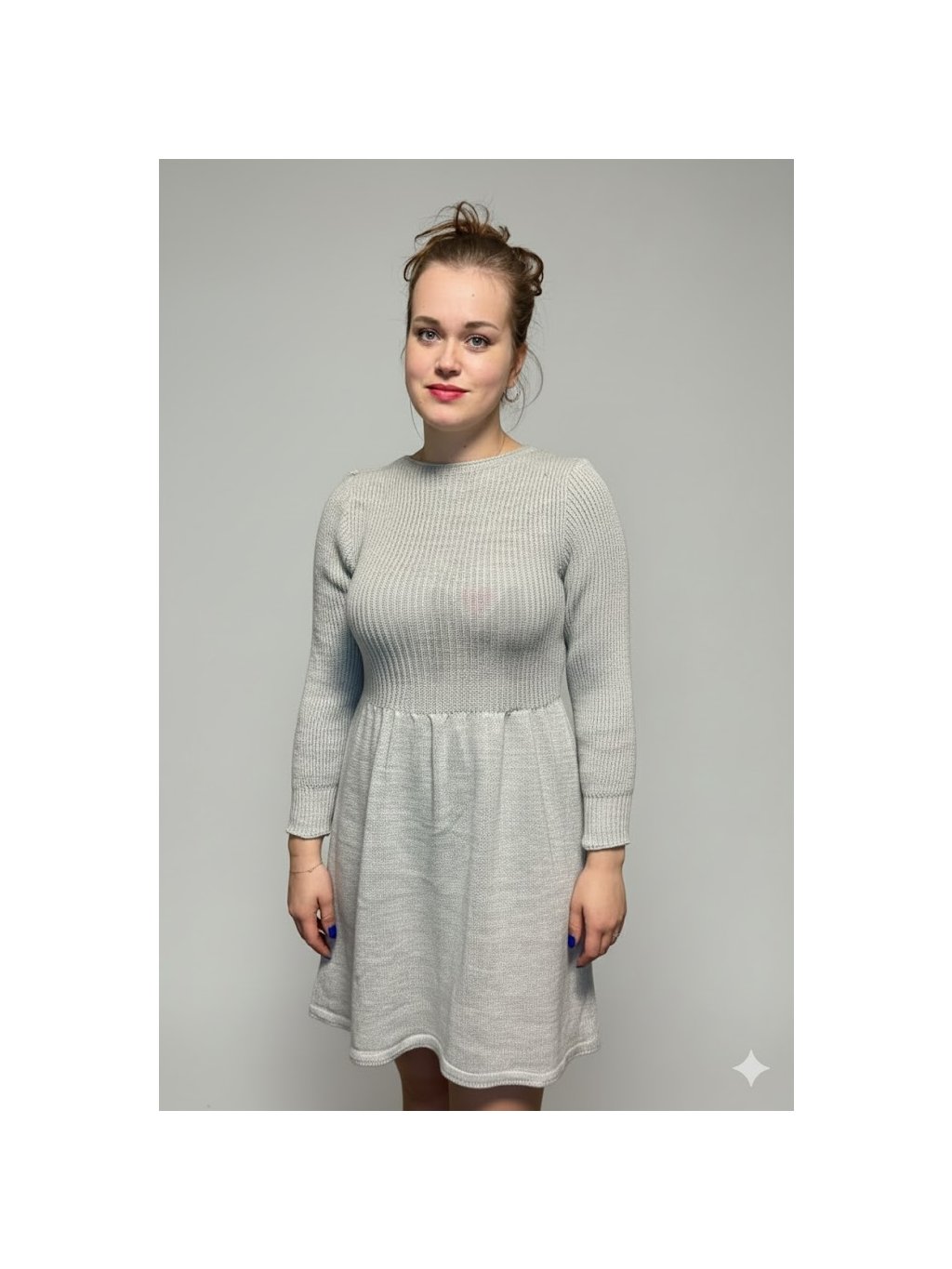 Šaty jsou hřejivé, příjemné na těle, materiál je pružný. Dlouhé rukávy jsou zakončené lemováním. Od pasu dolů jsou šaty volné. Vhodné na každou příležitost.