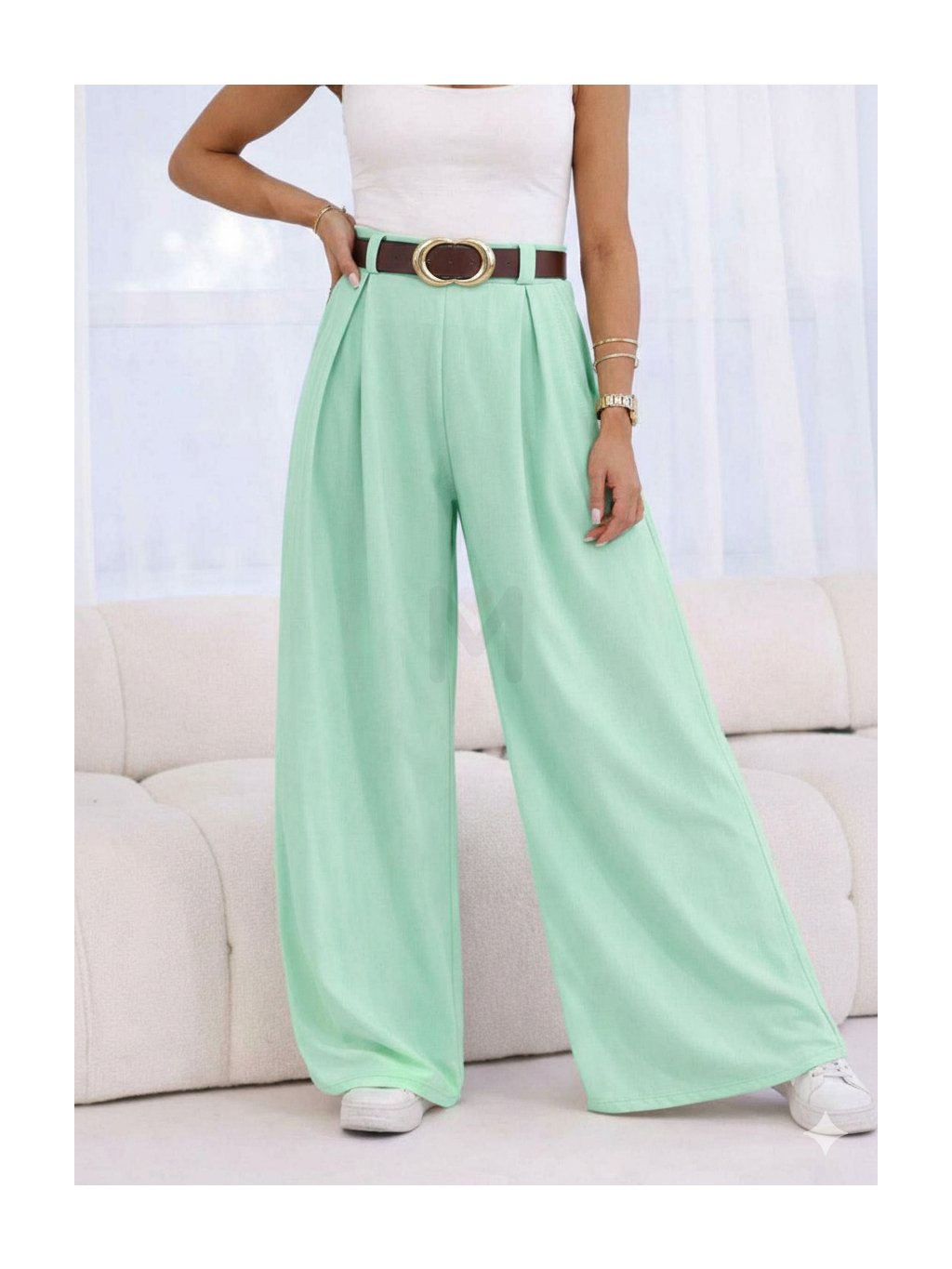 Vysoké široké kalhoty v svěží mintové barvě s elegantním plisováním v pase — splývavý a pohodlný střih pro každodenní i stylové příležitosti. Pásek je součástí.