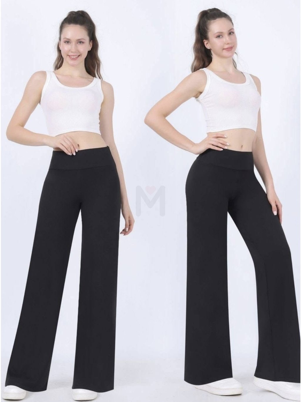Vyšší pas krásně zvýrazní postavu a široké nohavice opticky prodlouží nohy.